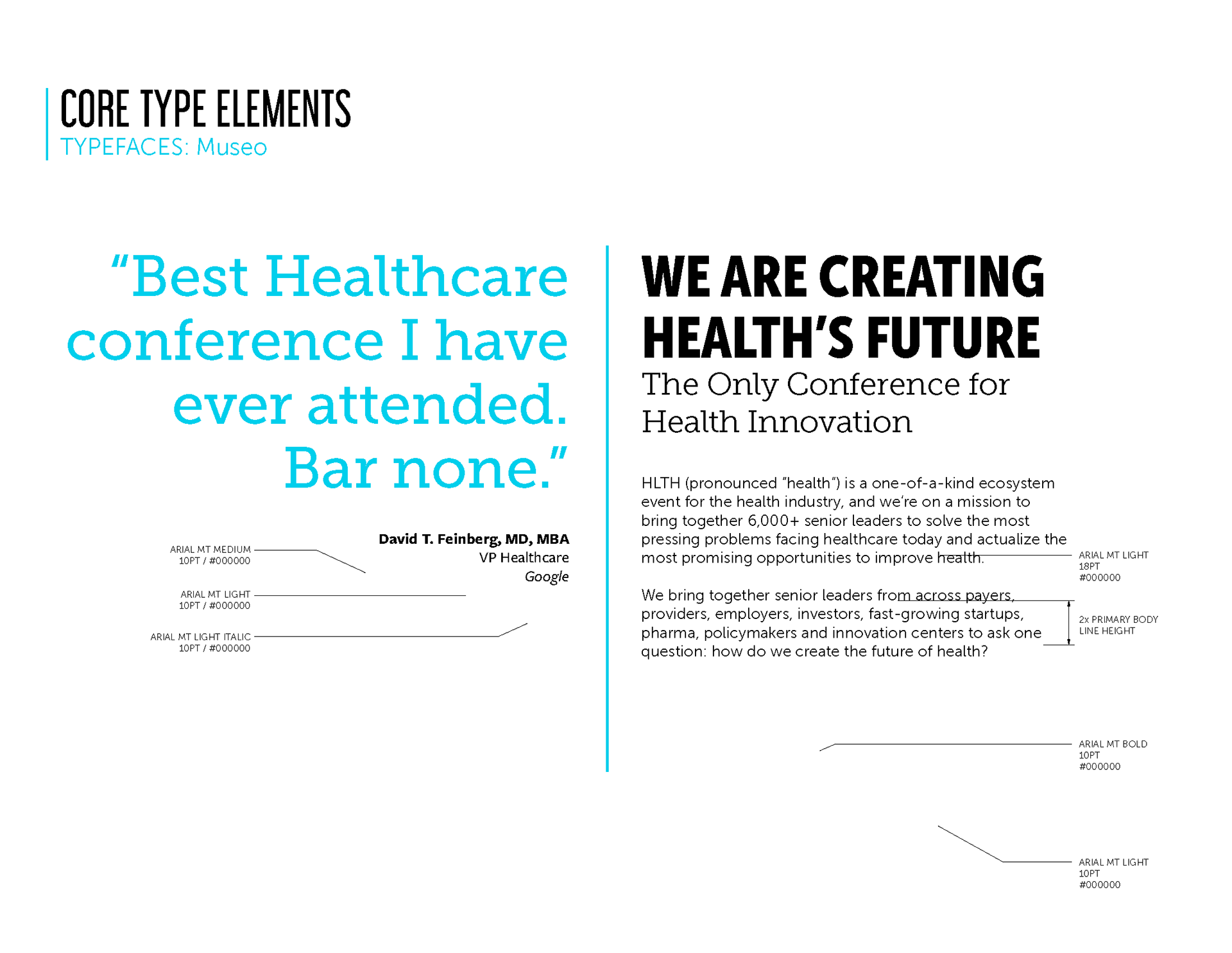 These are the markup’s concepts for the HLTH booth and the main stage. My role was to put together a visual concept of what the design would look like projected on the large screens. Lower-thirds and sponsorship labels.